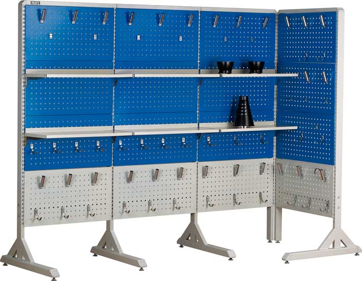 整理架可以自由組合,靠墻擺放或放置在車間中央,用于存儲各類工具、零件,拿取方便,便于目視管理 整理架可選用帶沖孔的上擋板、百葉窗式上擋板或各種置物擱板