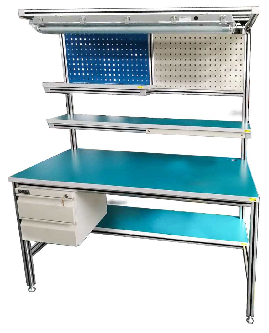鋁合金工作臺人性化設計,符合人體工程學原理,提高生產(chǎn)效率模塊化設計,多種附件可視需要任意組合,且具有互換性;標準化設計,防靜電工作臺、鋁合金工作臺可根據(jù)不同要求,定制您所需產(chǎn)品;高品質臺面,具有防靜電/防火/耐磨等性能;鋁合金工作臺高低可調節(jié),適合您的使用需求;支撐采用鋼結構設計,堅固耐用,可均勻承載500kg;整體防靜電,從根本上杜絕潛在靜電對產(chǎn)品的威脅。