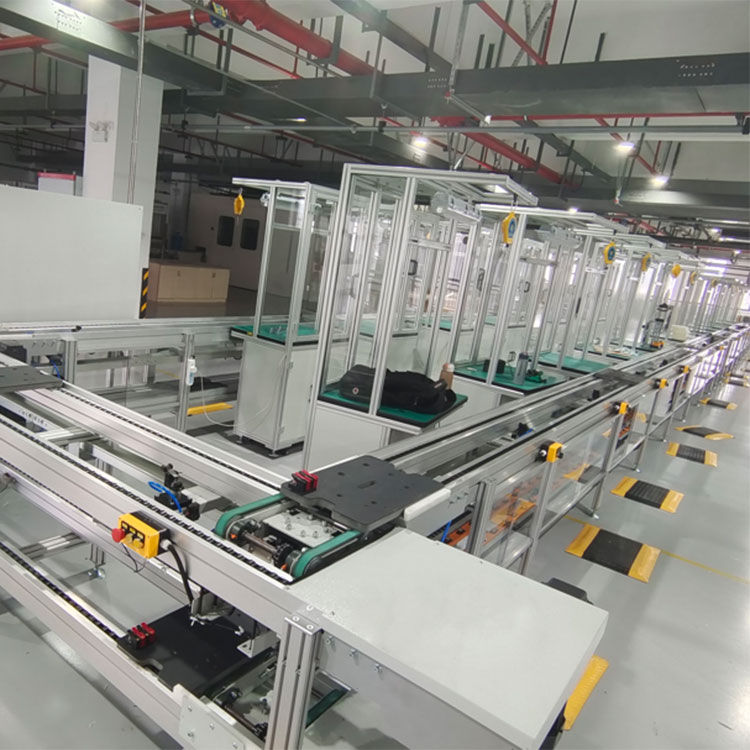 一般采用滾筒和倍速鏈兩種形式其中倍速鏈生產線是以倍速鏈為核心設計的工業(yè)輪送線其中以2.5 倍和3 倍速鏈線為主,可用千大宗物品和各式散件的生產輸送, 設備布局非常靈活,可以根據車間環(huán)境進行布局。