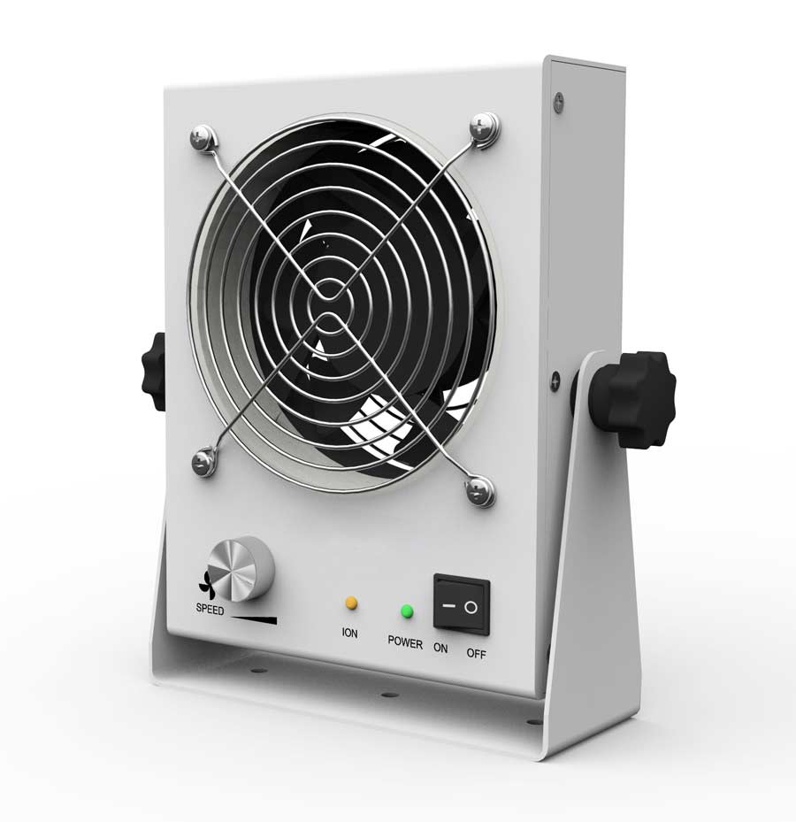 臺式離子風(fēng)機采用正、負(fù)同步發(fā)射電極,通過直流高壓產(chǎn)生電暈放電,將空氣分子電離,產(chǎn)生大量正、負(fù)極性的空氣離子,并由風(fēng)扇將其吹向被消物體表面進(jìn)行靜電消除??蓮V泛應(yīng)用于電子、光電等行業(yè)。