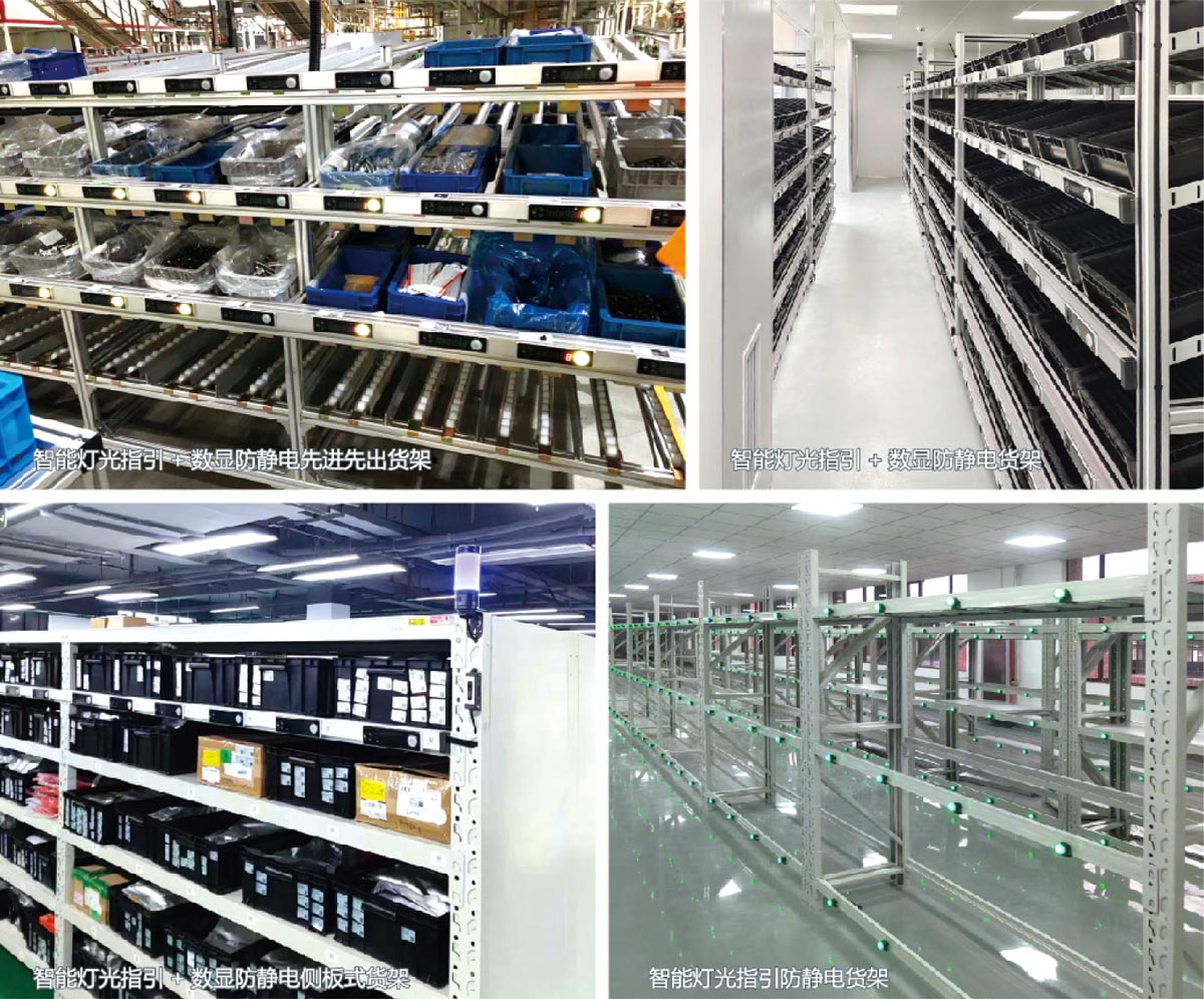 - 智能防靜電貨架通過數(shù)顯式和燈光指引系統(tǒng)能對貨架存放的物品進行簡便直觀的錄入,方便迅速的査詢,靈活的分類統(tǒng)計。